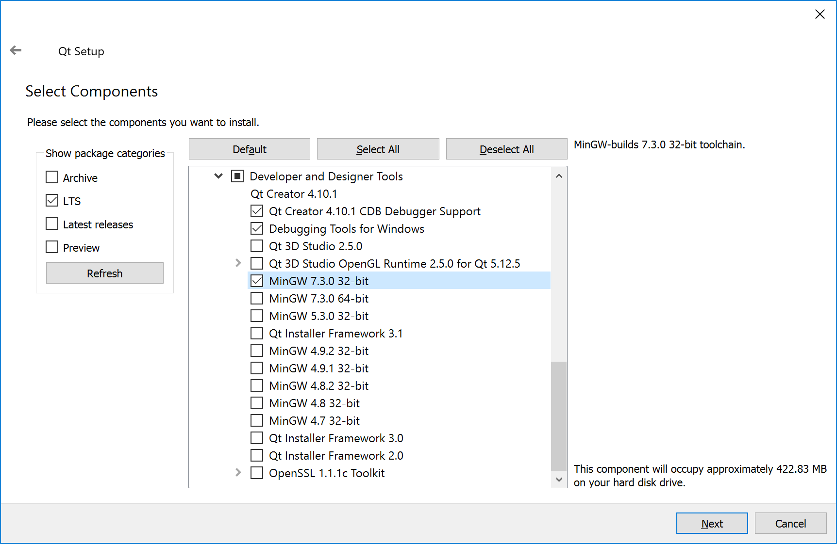 You can choose other version of MinGW if you have special reason as long as the 2 components are consistent.