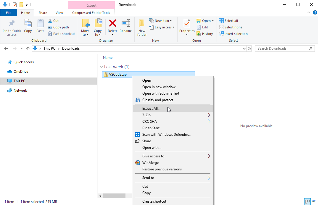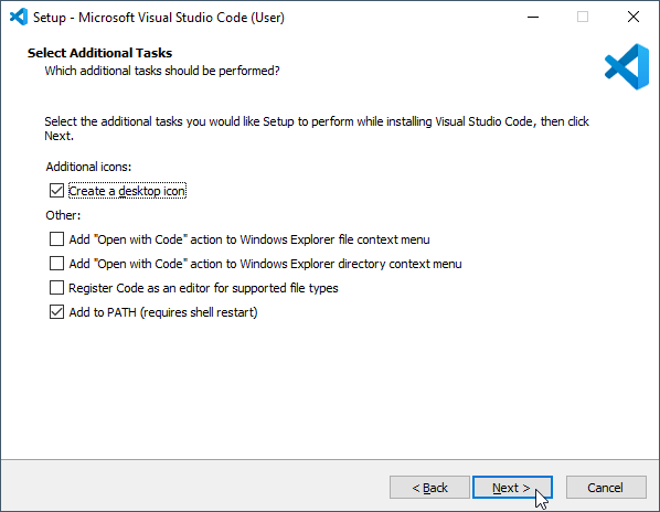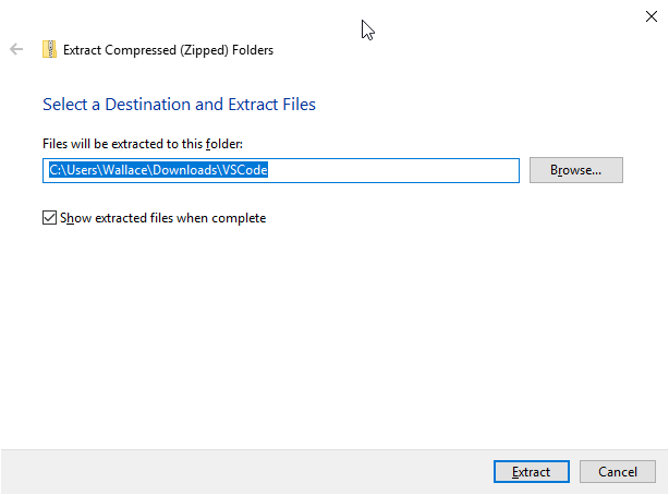 The easiest way to get VS Code up and running on your Windows is to use the portable version prepared by us. We have bundled the correct compiler and extensions in it already so that you don't have to install them yourself.
