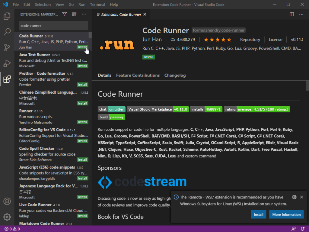 Similarly, search for and install "Code Runner".