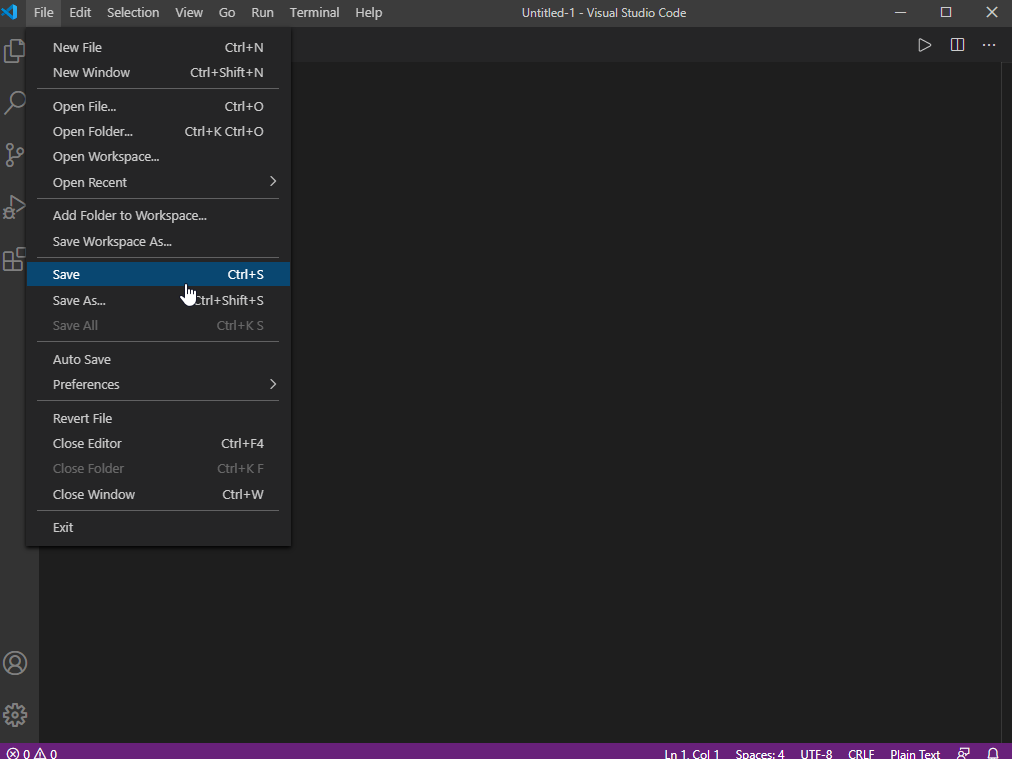 Let's save the "untitled" file right away first. Choose "Save" from the "File" menu.