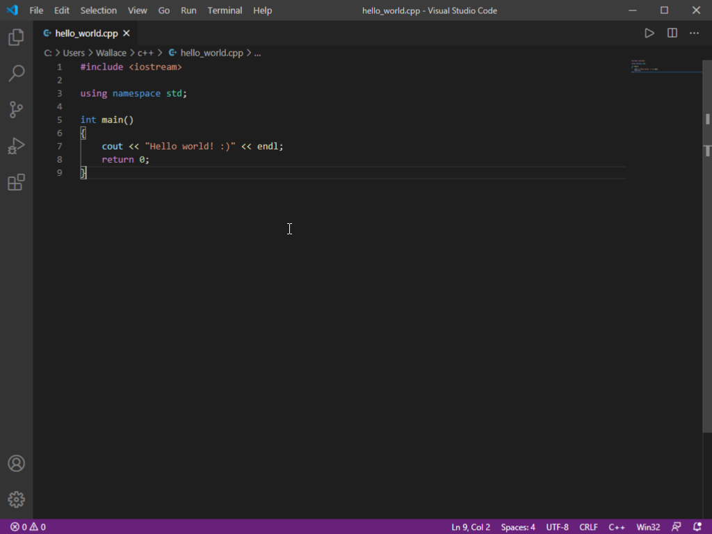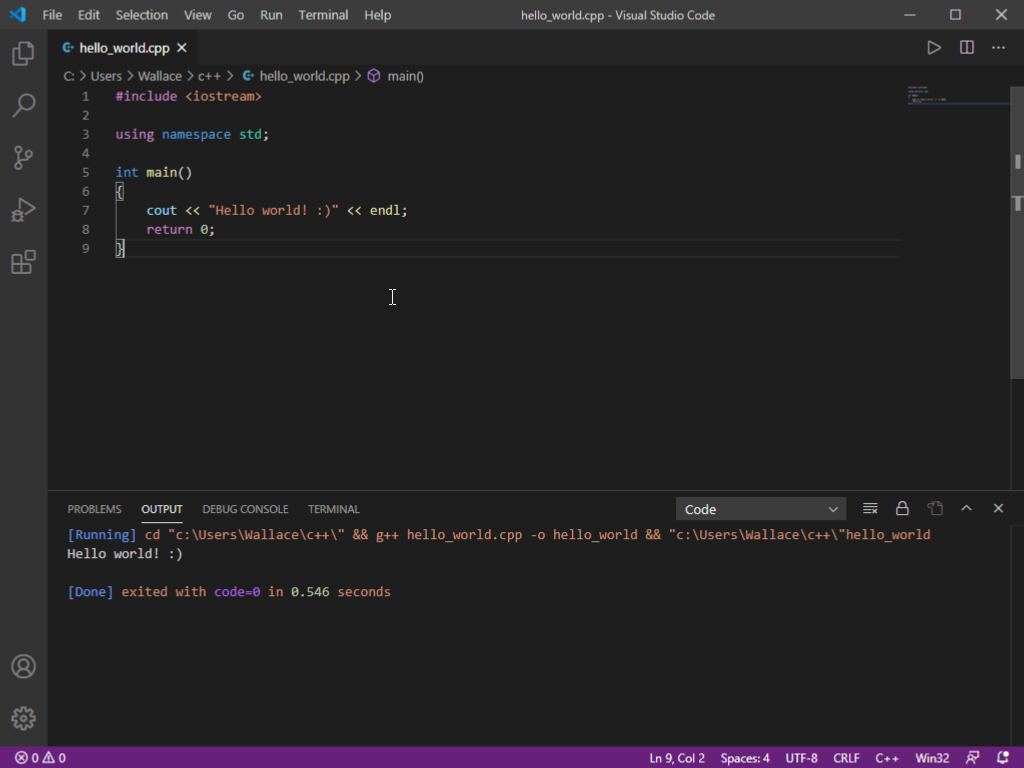 Viola! Here is your first C++ program running at the bottom! Congratulations!