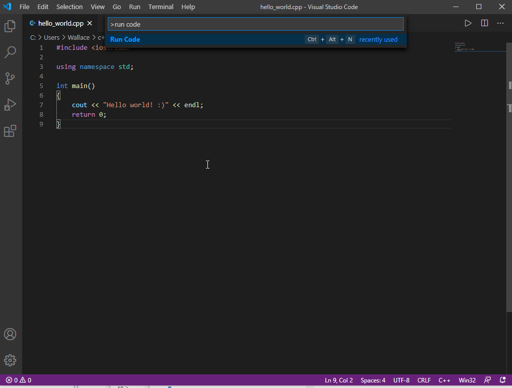 After following our guide to build and run your first program with the Code Runner extension, if you want to create another program, you can simply add a new file, write your code, then use the "run code" command from command palette.